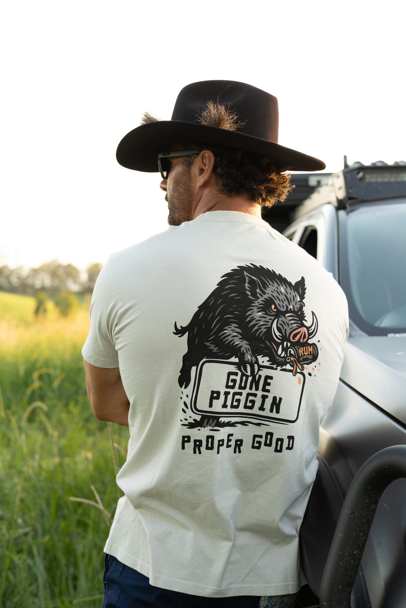 The first drop from R.U.M - Roadtrip Uniforms and Memories. Inspired by outback travel,  country humour and the stories you pick up along the way..... Good Luck coming across this Boar at night!
