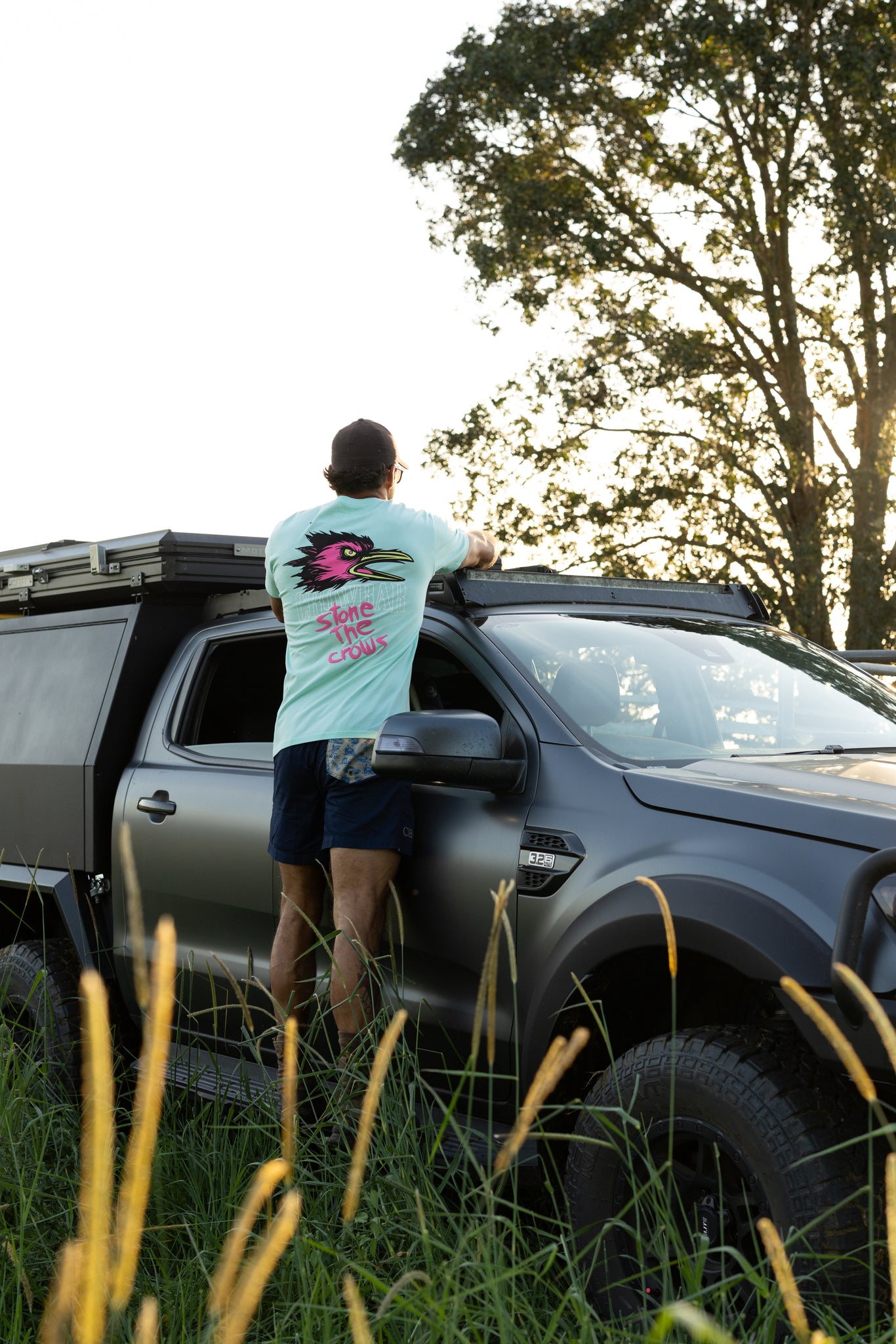 A fresh take on the STC (Stone The Crows) graphic. Summer tones, bold colour contrast and strong character, finished with puff ink that add texture and depth. Loud colours. Clear attitude.