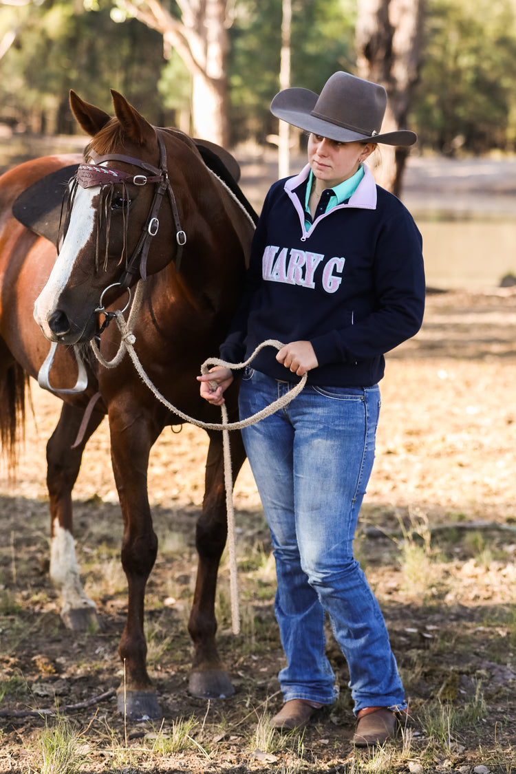 Mary G 1/2 Zip Closed Jumper - French Navy-Pale Pink